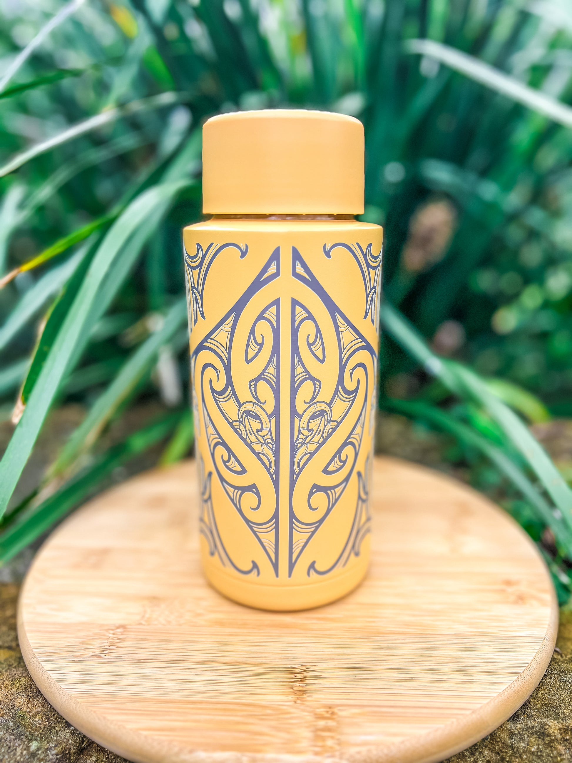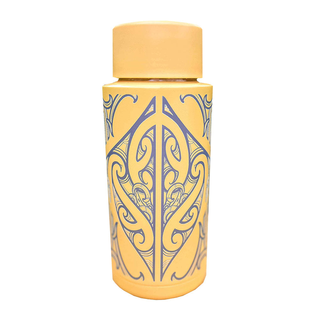 This design marks the moment Tāne receives his first blessing in the waiora, the sacred waters of knowledge and life, symbolising the flow of mauri and the pursuit of higher understanding. It is a reminder to honour our own ascent, our own sacred journey, every time we hydrate.